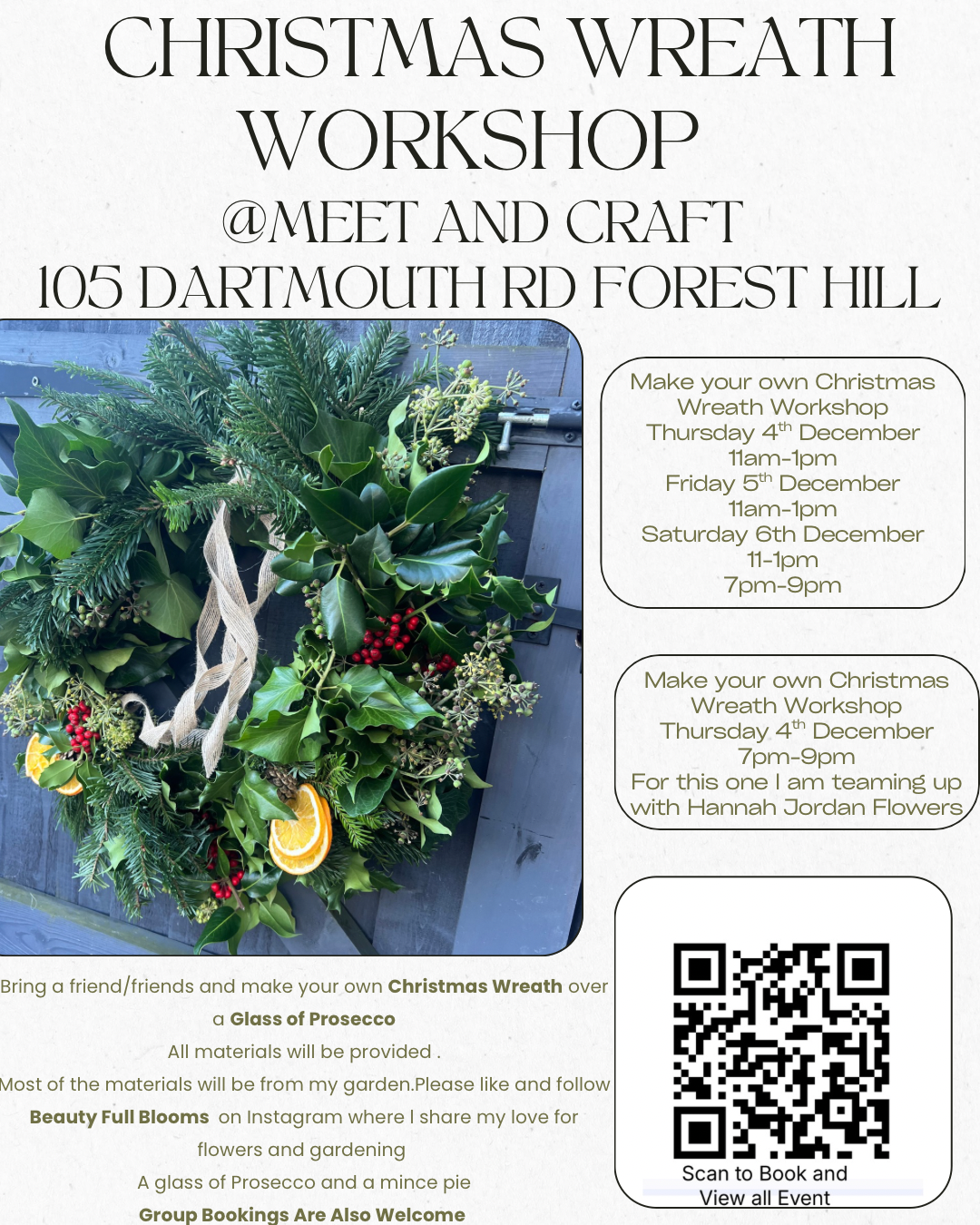 Bring a friend or come by yourself and join in the fun making your own Christmas Wreath.Over a glass of prosecco and mince pie